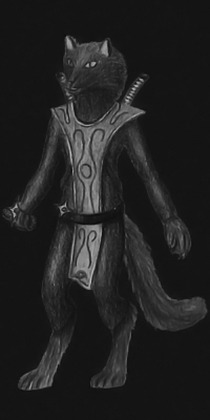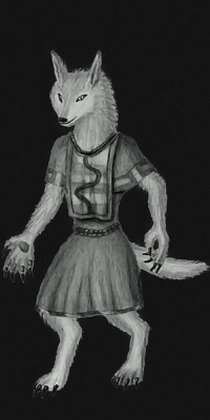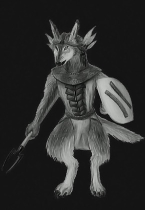 An Adlet’s appearance is that of a bipedal wolf or varg. Though small, their physiology is tough, and their coordination and reflexes are second only to the Koh-Trr. Unique among the sentient species, their sensitive, oversized ears make them deadly hunters. Adlet usually range between 4 and 5 feet tall. Their average lifespan is 70 years, and they are considered adults around 12.