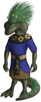 Anthrosaurs are a lifeform derived from dinosaurs and lizards by the white dragon May’Tothosis. She formed this species in an attempt to create a new army of soldier-acolytes. When her anthrosaurs failed to drastically outperform the other sentient species, she abandoned them. Fortunately, the hapless group was rescued by the kind red dragon Tahr’Tarrus, and taken by her to the jungles of I’Gremsul where huge tribes can now be found.
