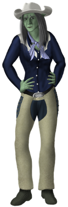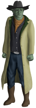 Since much of their realm is so arid, orcs have grown to prefer livestock ranching over crop farming. Raising, herding, trading, and cooking cattle is an all-encompassing industry in most parts of Skreti. Orcs not involved in ranching or adventuring might profit from those professions as train crew or city merchants, especially given the increasing amount of foreign commerce that has arrived in the realm in the present Age. Still others profit from the other everlasting Skretan pastime: violence. Militia-like posses are constantly raised to supplement adventurers in fighting off the Adlet tribes, and criminality is rampant. The word "outlaw" is thrown around far more often than one might expect in such a relatively lawless realm, and the individuals thusly labeled are often respected for their will and determination even while they are hated for their deeds.