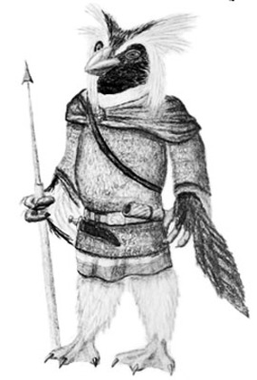 Vitur Roc (often shortened to Roc) are an enormous, flightless avian species that seem to be most closely related to penguins; their cold-enduring and swimming abilities make them the only sentient species really suited to thrive in the Gelid Isles. Though they cannot truly breathe underwater like anthrosaurs and Therbolgites, they can hold their breath for over 40 minutes, and are every bit as fast-swimming. Additionally, they can do so perfectly well in frigid arctic seawater - a feat that not even elves can copy indefinitely. Roc "arms" are a hybrid of flipper-like wings and hand-like talons. On land, their mobility is not as excellent, given their short legs and rotund physiques. In any environment, however, a Roc is tough - their constitutions are the strongest of any disparate species, more in line with antecessoroids. Vitur Roc usually range between 6.5 and 7.5 feet tall. Their average lifespan is 80 years, and they are considered adults around 16.